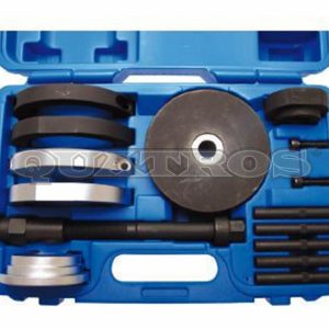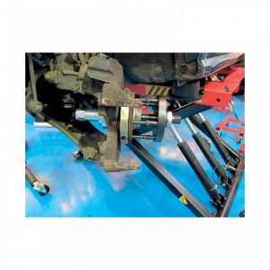 Przyrząd umożliwia szybką i łatwą wymianę piasty koła bezpośrednio na samochodzie, bez konieczności demontażu elementów zawieszenia.