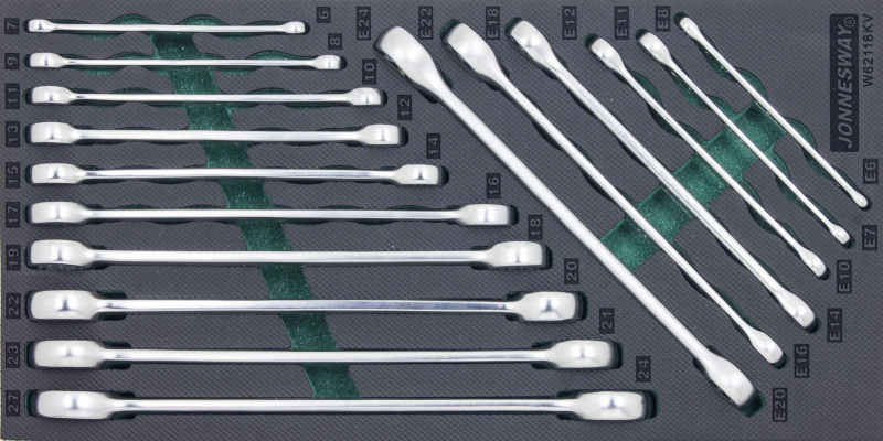 W621 | 10 szt. – klucze oczkowe w rozmiarach: 6×7, 8×9, 10×11, 12×13, 14×15, 16×17, 18×19, 20×22, 21×23, 24×27 mm